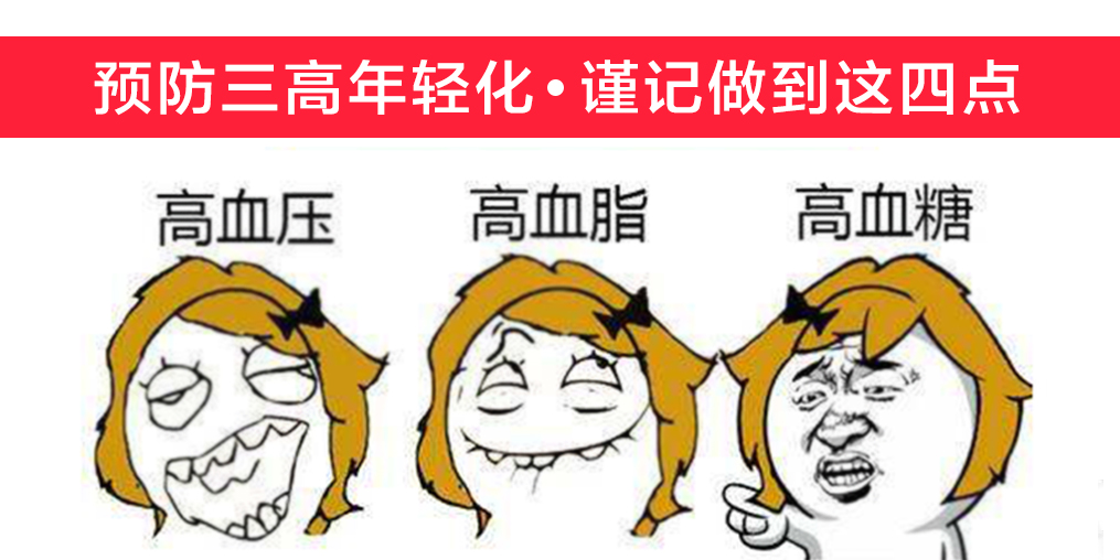 “三高”慢性病易引起各種各種并發(fā)癥,例如腦卒中、腦梗塞、腦出血、心肌炎、心律失常、心肌梗塞、冠心病、糖尿病等都是“三高”并發(fā)癥的表現。所以說,年輕人預防三高很重要: