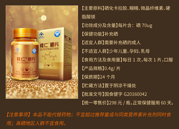 鄭州桂仁醫(yī)藥科技有限公司視質(zhì)量如生命,在產(chǎn)品研發(fā)中注重每一個細微的變化,力求將每一個環(huán)節(jié)都做到精益求精, 只為讓天下百姓放心、安心。 誠信于天下的鄭州桂仁醫(yī)藥人將“保證絕無借口”作為企業(yè)的準則,時時刻刻力求以一流的質(zhì)量,一 流的服務(wù),一流的信譽,一流的敬業(yè)精神,最終為天下百姓提供一流的補硒產(chǎn)品和服務(wù),竭盡全力為天下百姓健康。
