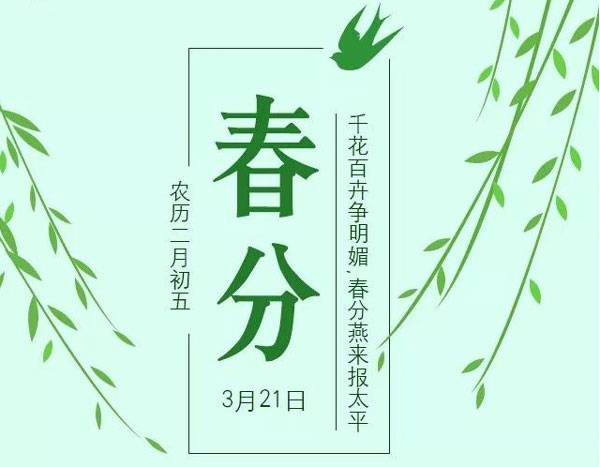 2018年3月21日星期三,春分,二十四節(jié)氣中的第四個節(jié)氣,與秋分對應(yīng),這天太陽光直射赤道,北半球為春分,而南半球則恰好是秋分。春分時,從理論上說,全球晝夜等長;春分之后,北半球各地晝漸長夜?jié)u短,南半球各地夜?jié)u長晝漸短。春分時,全球無極晝極夜現(xiàn)象;春分之后,北極附近開始極晝,范圍漸大;南極附近極晝結(jié)束,極夜開始,范圍漸大。春分到來時定不負(fù)春光不負(fù)卿。